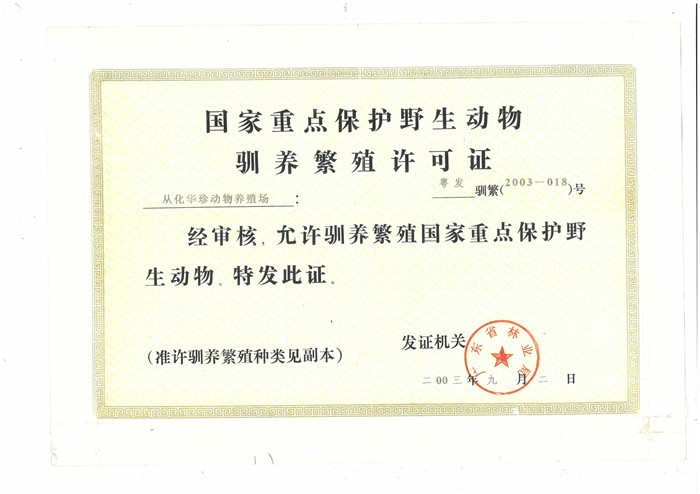 馴養(yǎng)繁殖許可證